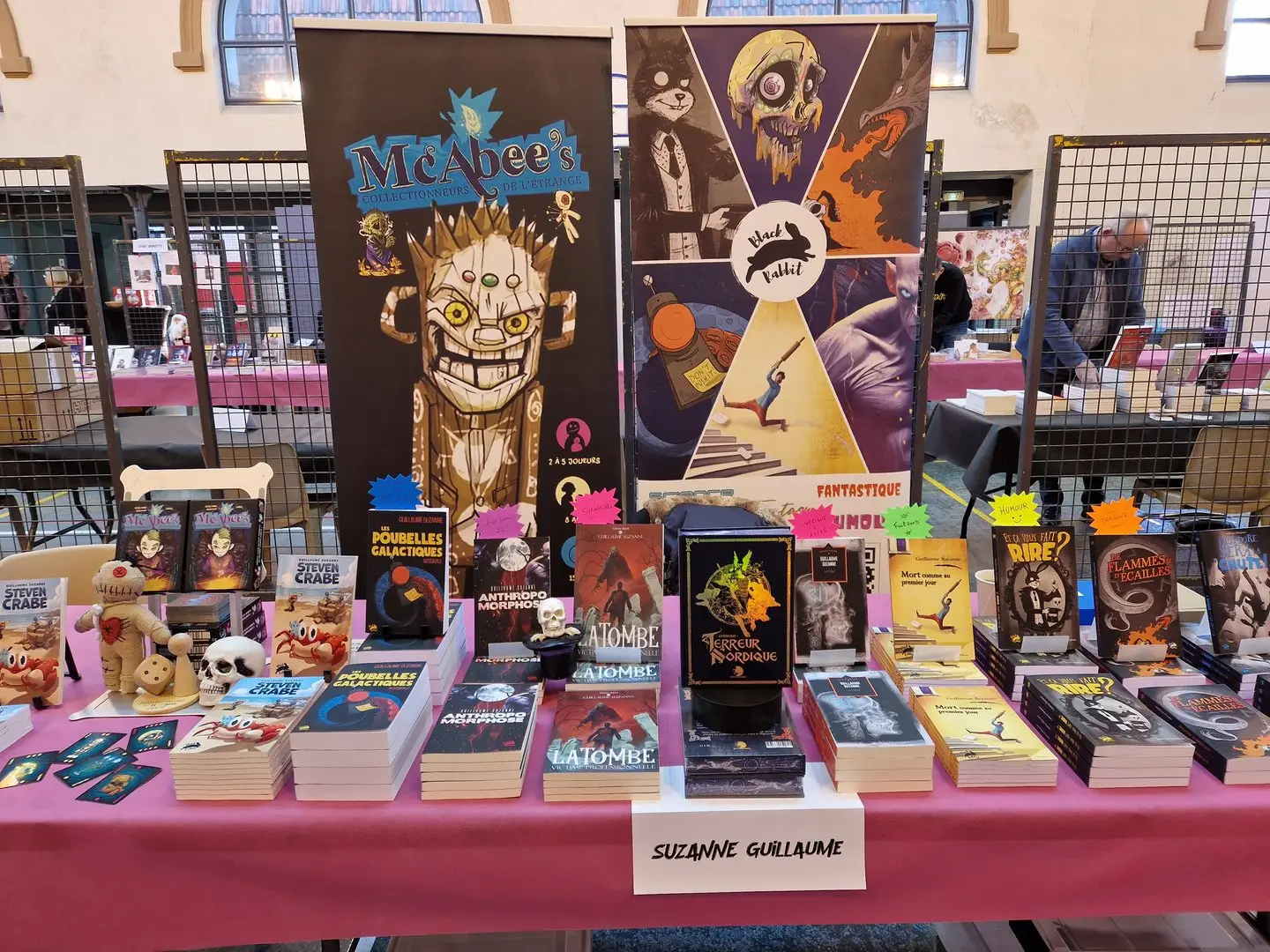 Retrouvez sur notre stand Sophia Humbert et Guillaume Suzanne, auteurs des anthologies et romans, mais également AL-DG l'illustrateur exclusif de Steven le Crabe qui vous proposera des dédicaces, affiches et cartes postales (Druide, Paladin, Chaman, Danseuse, Hannibal fan art...) et autres goodies.