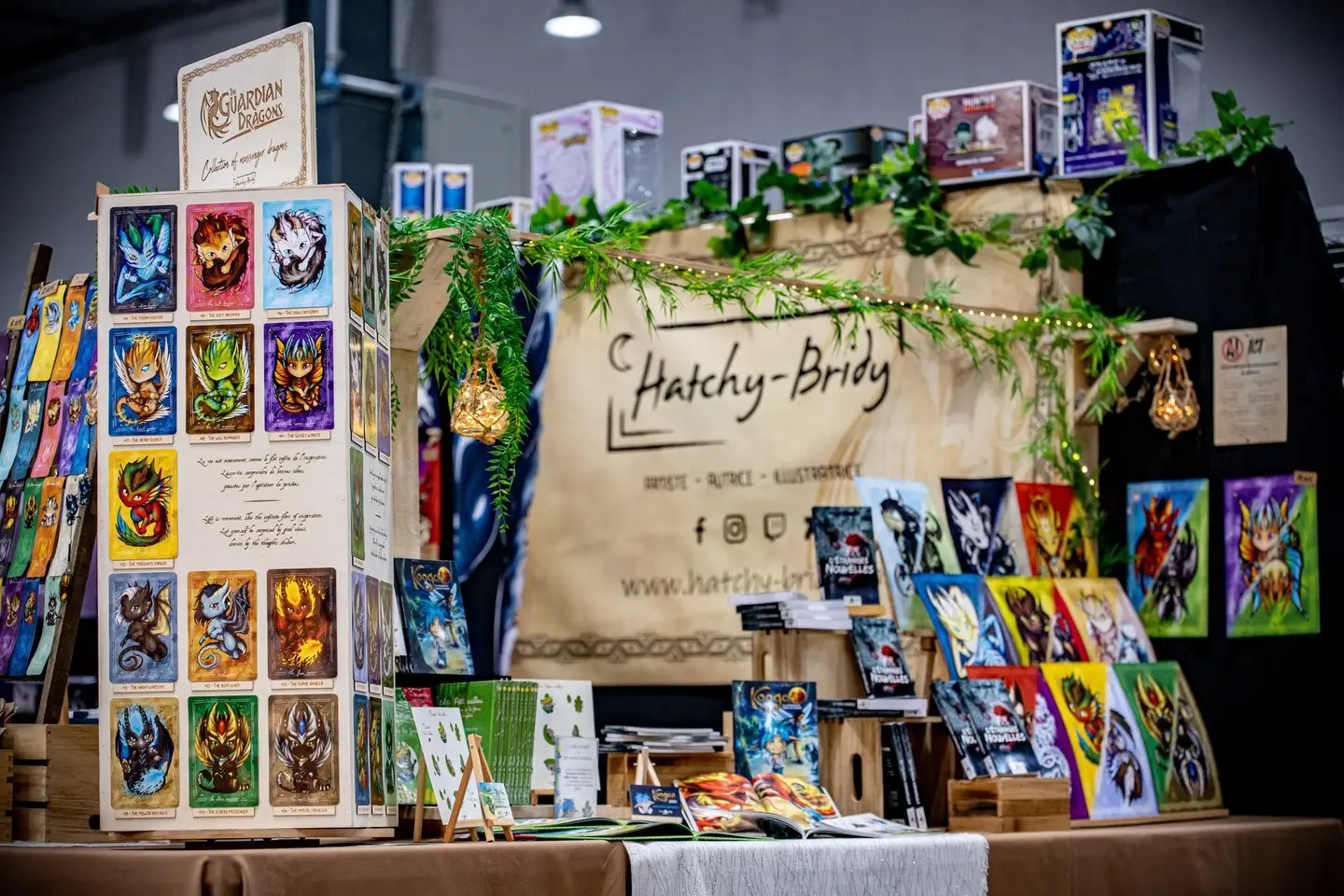 Hatchy-Bridy evolueert in de fantastische wereld sinds haar kindertijd. Grafisch ontwerper in de PAO van beroep sinds meer dan 10 jaar, vindt ze de tijd om haar eigen werelden in de fantasy te bedenken en te creëren terwijl ze samenwerkt met drukkers en bedrijven in de signalisatie. Met haar veelzijdigheid op het gebied van visuele communicatie en drukbestanden slaagt ze erin om haar eigen werelden aan te bieden in de vorm van illustraties, en later in tekst nadat ze een lange schrijfperiode is begonnen om een verhaal te ontwikkelen dat al jaren in haar hoofd rondspookt: Wild Moon. Ze houdt ervan om haar werelden en personages te delen via de kunst van het tekenen. Met de wens om troost te bieden, besluit ze een uniek project rond draken te creëren met levensmantra's en biedt ze snel een serie kaarten aan om met haar hart te kiezen.