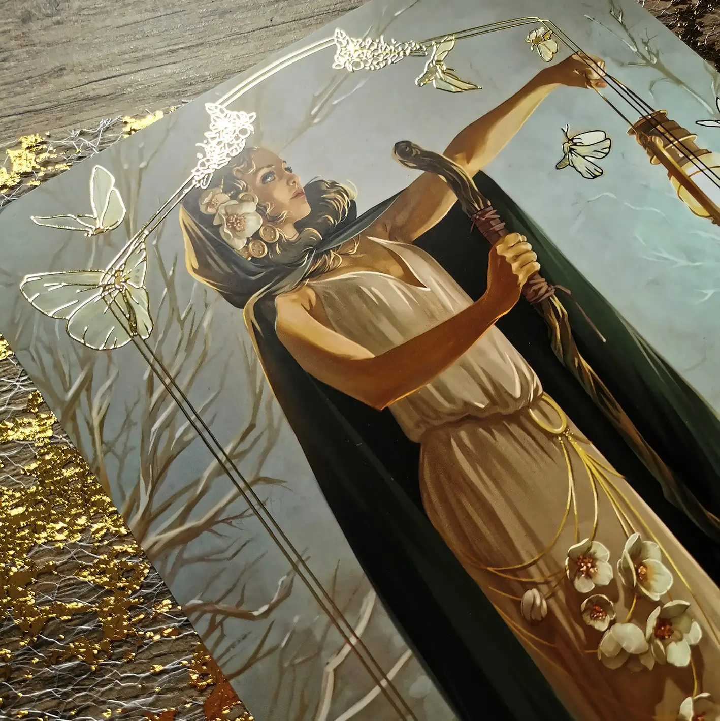 Vervallen voor de charme van de wereld van Tarotkaarten, verkent ze de symbolische rijkdom en de overvloed aan details van de grote arcana, die ze met gevoeligheid en verbeelding herinterpreteert - sommige van deze werken op kaarten zoals De Hermiet of De Wereld illustreren deze creatieve benadering. Meer recent heeft de Griekse mythologie haar repertoire verrijkt: goden, godinnen en antieke helden herleven door haar blik, in een persoonlijke herinterpretatie die kracht, poëzie en mysterie mengt.