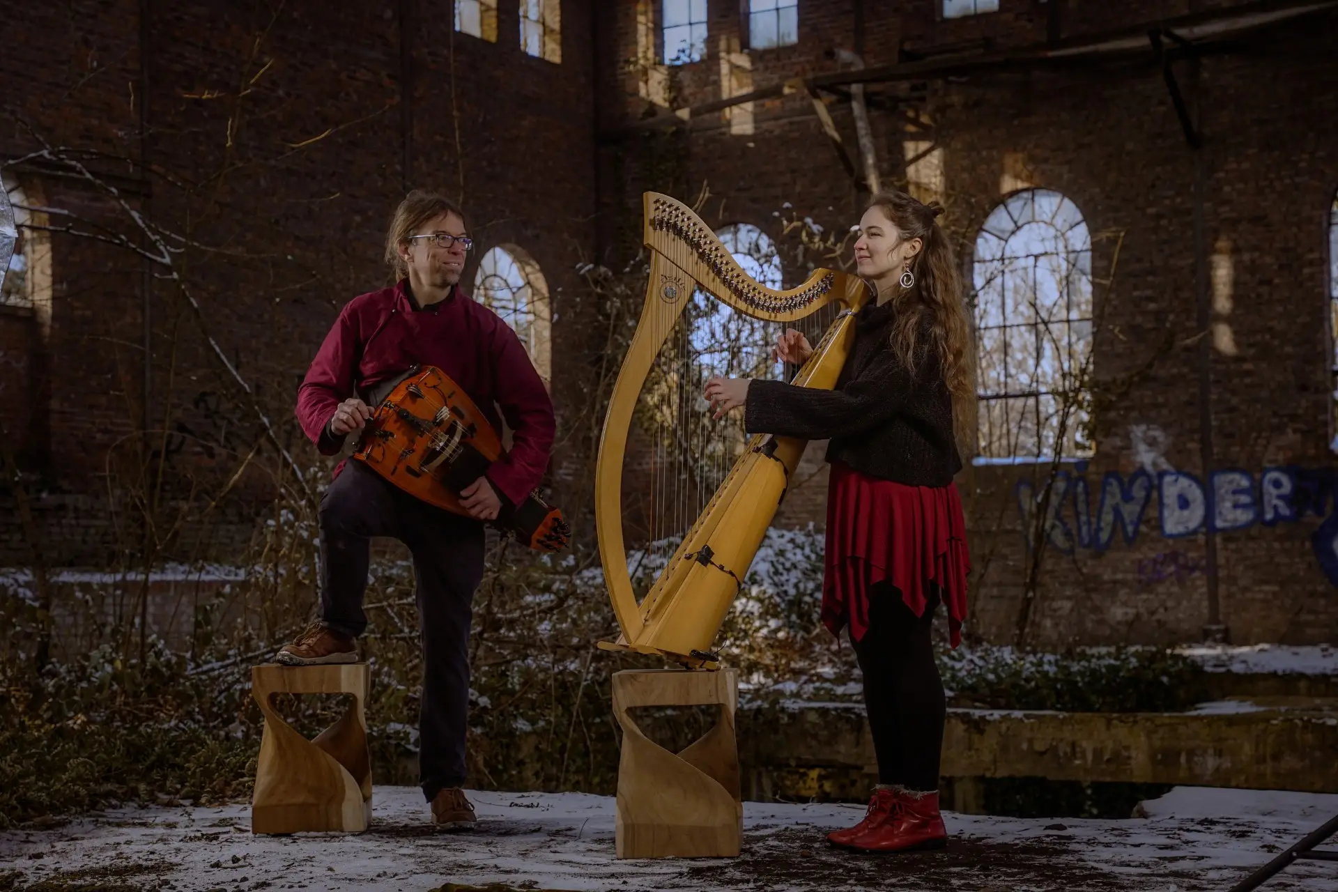 Welkom in de wonderlijke wereld van Fyndus, een nieuw folkduo uit het noorden van het land. Het bestaat uit Emma Coopman (zang, celtische harp en diatonische accordeon) en Thomas Hoste (elektro-akoestische alt-hurdy-gurdy en geluidseffecten). Samen bieden ze zeer dansbare muziek aan om naar te luisteren of op te dansen. In 2025 wordt de release van hun eerste album verwacht. Geniet van hun muzikale verhalen en laat je betoveren door de magische harmonie van hun instrumenten.