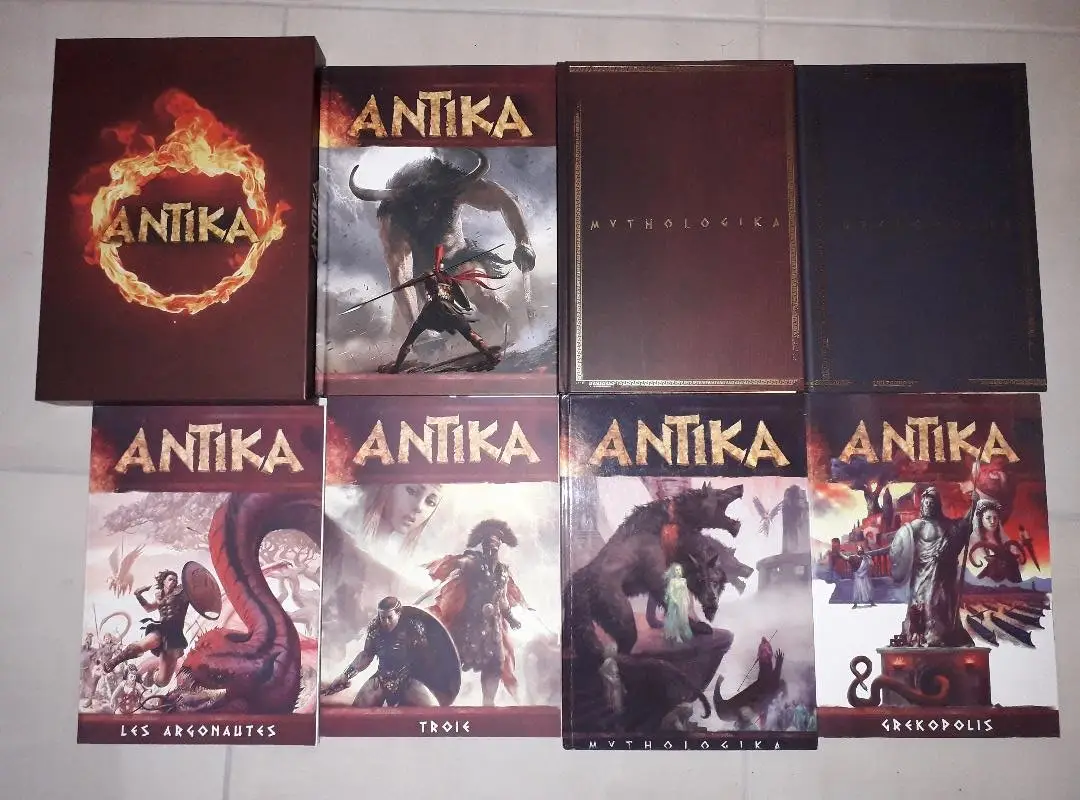 De ANTIKA-reeks, gericht op de Griekse mythologie, bestaat nu meer dan 10 jaar. Ze richt zich tot hen die houden van verhalen waarin de goden, de helden, de steden en de legendes niet alleen decor zijn, maar spelmateriaal. Wat telt, is het kunnen vertolken van personages die hun plaats vinden in dit mythologische universum, met keuzes, consequenties en echte avonturen om rond de tafel te beleven.